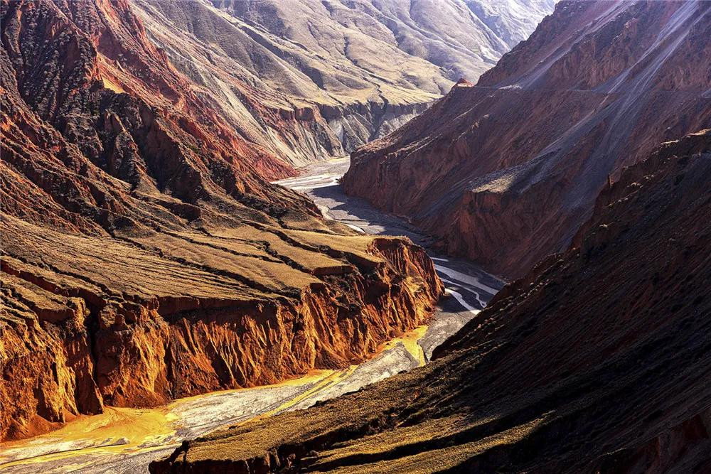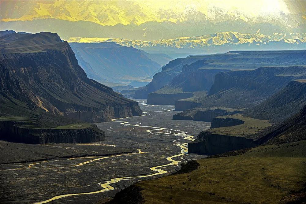 峡谷谷壁直立,沿谷到处是断崖,奇特险峻。峡谷沟壑层叠,错落有致,雪山、峡谷、草场、流水相辉相映,鬼斧神工。安集海河从谷底穿越而过,养育和浇灌了安集海垦区和兵团下野地垦区数十万人民和数百万亩良田。千万年的雨水冲刷和地壳的变化,在沙砾石堆积下河谷悬壁上留下了密布如织的冲沟,冲沟布满了长达几十公里的河谷槽壁。谷底平展开阔,砾石遍地,流水时合时聚,形成了密密麻麻的小溪,在太阳光的映射下犹如一条从天而降的白丝带,勾画出一幅幅美妙的图画,美不胜收。是摄影家从事创作的摇篮,也是新疆不收费的旅游胜地。