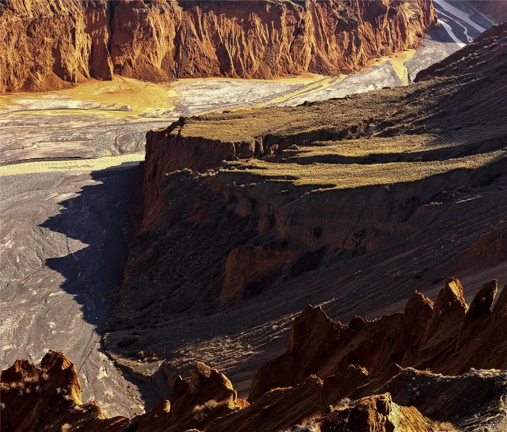红山大峡谷,一个神秘而有故事的地方,位于新疆维吾尔自治区伊犁哈萨克自治州境内。沿312国道沙湾县安集海镇西行约十几公里向南10公里便进入峡谷,峡谷长约20-30公里,总体南北走向,因千万年来安集海河自然冲刷和地震断裂形成。峡谷两岸地貌各异,西岸是戈壁、草原,较平坦,东岸则是绵延起伏、五彩斑斓的山峦,形成鲜明的对比。谷底宽处4、500米。