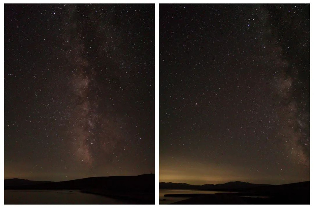 凌晨一点,银河登场,如一条星星堆聚之山中的狭长峡谷,横亘整个天际南北,延伸到地平线的另一头。这是一条缓缓移动的“峡谷”,甚至肉眼就可感知,这一刻还在纵横南北,下一刻已然偏向东西。是谁,在以浩瀚神力,挥舞宇宙的火鞭?