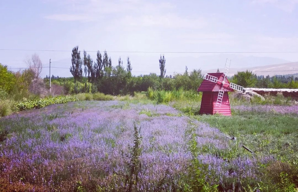 薰衣草叶形花色优美典雅,蓝紫色花序颖长秀丽,不仅好看,还散发出醇厚浓郁的香气,被誉为“芳香药草”和“香草之后”。每年5、6月份是霍城薰衣草的花期,9、10月份还会补种一波,8月份去只看到零星的几块田地有成片的薰衣草。