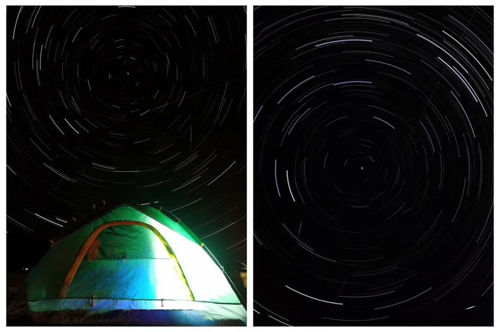 镜头对准北天,长曝光下,以北极星为中心,包括北斗七星在内的诸天星斗,正一刻不停地绕其旋转。北极星何以如此殊胜,众星围拱?其实,北极星一点也不特殊,和那亿万颗星星毫无分别,只是,它和地球的位置关系有点特殊——它正好位于地球地轴的延长线上。我们看到的星轨不是“众星捧月”,而是地球自转造成的假象。这就像古人以为地球是宇宙的中心一样,站在地球上,太阳、月亮不都在围着我们转嘛!