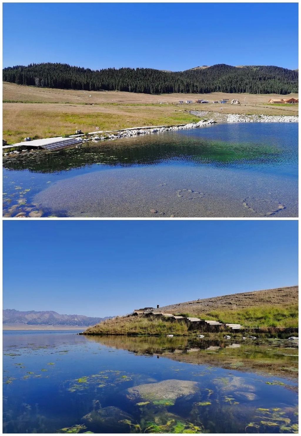沿湖转而向东,来到乳海之源,此为科古尔琴山脚下的一处甘美泉流,水质清冽,四季不辍,注入赛里木湖(又称“乳海”)。