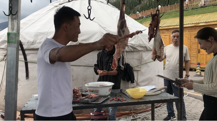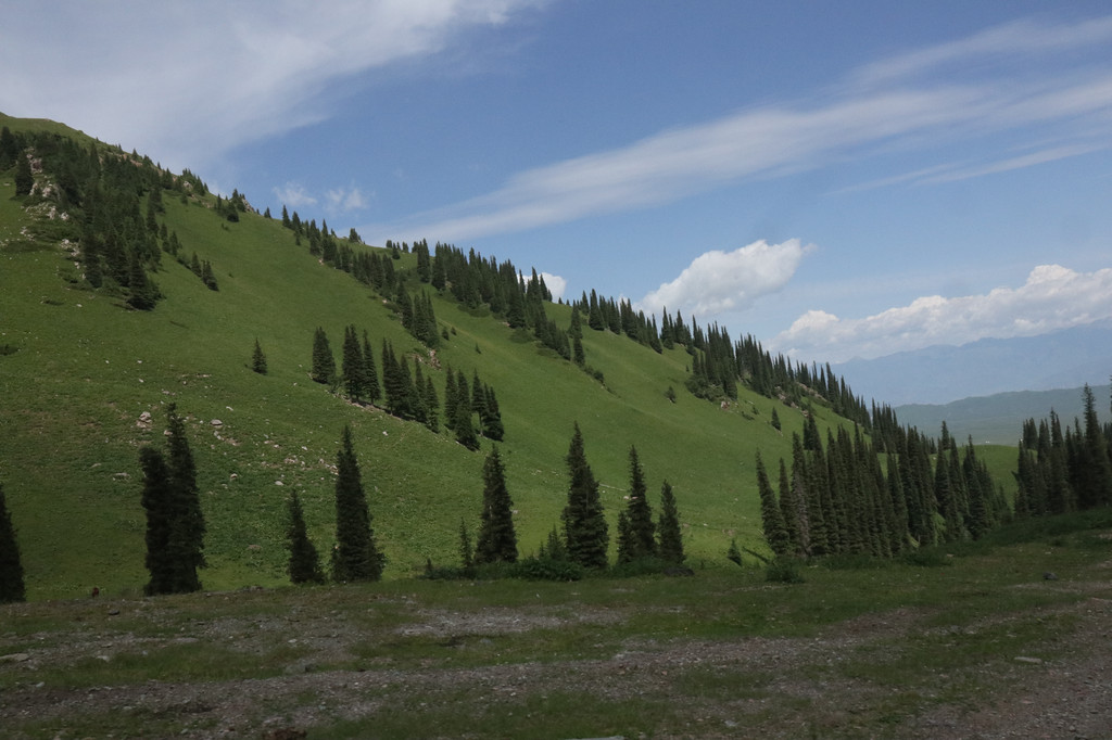 在伊昭公路翻越乌孙山脊的白石峰,海拔3700多米。我们在白石峰吃的午饭。好吃又不贵,看到卖羊肉串的哈萨克小伙边烤肉边跳舞。