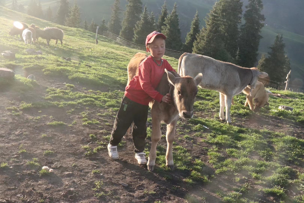 在晚上十点太阳落山我们才告别苏哈村。一个让我近距离走进牧民生活的地方。不是网红点,没有传说故事,没有门票。如果想骑马是要付费的。我们在阿娅娜家吃了奶油沾馕。好客善良的一家人,快下山时阿娅娜的二个姐姐和父亲让我用相机邦他们拍了几张照片。诺大的草原只有两、三户人家在放牧。上学的孩子去拉那提读书。没上学的孩子内心很是孤独。因此对我们的到来阿娅娜充满了好奇心。孩子们都会说汉语但他们的父母不会。真诚的希望他们好好学习,走出草原去读大学。