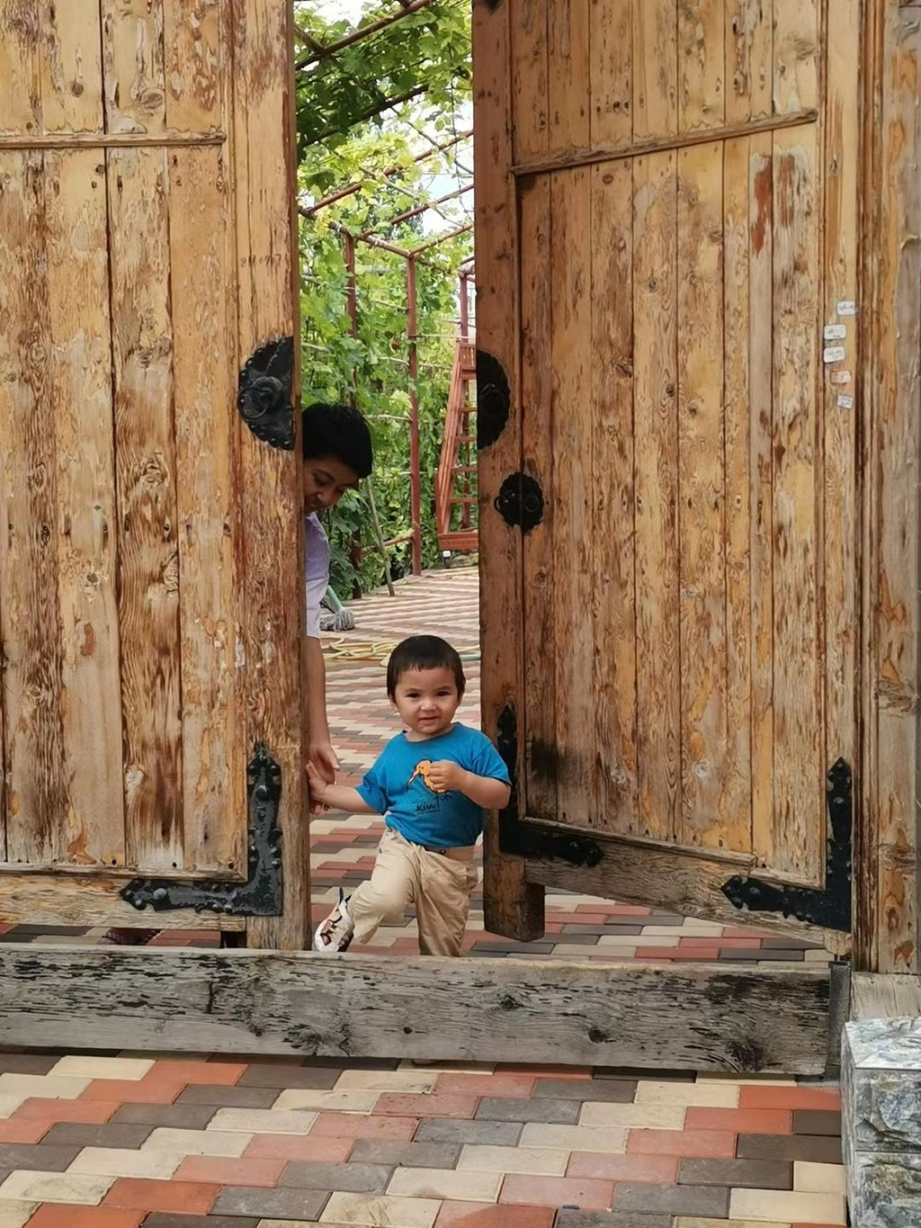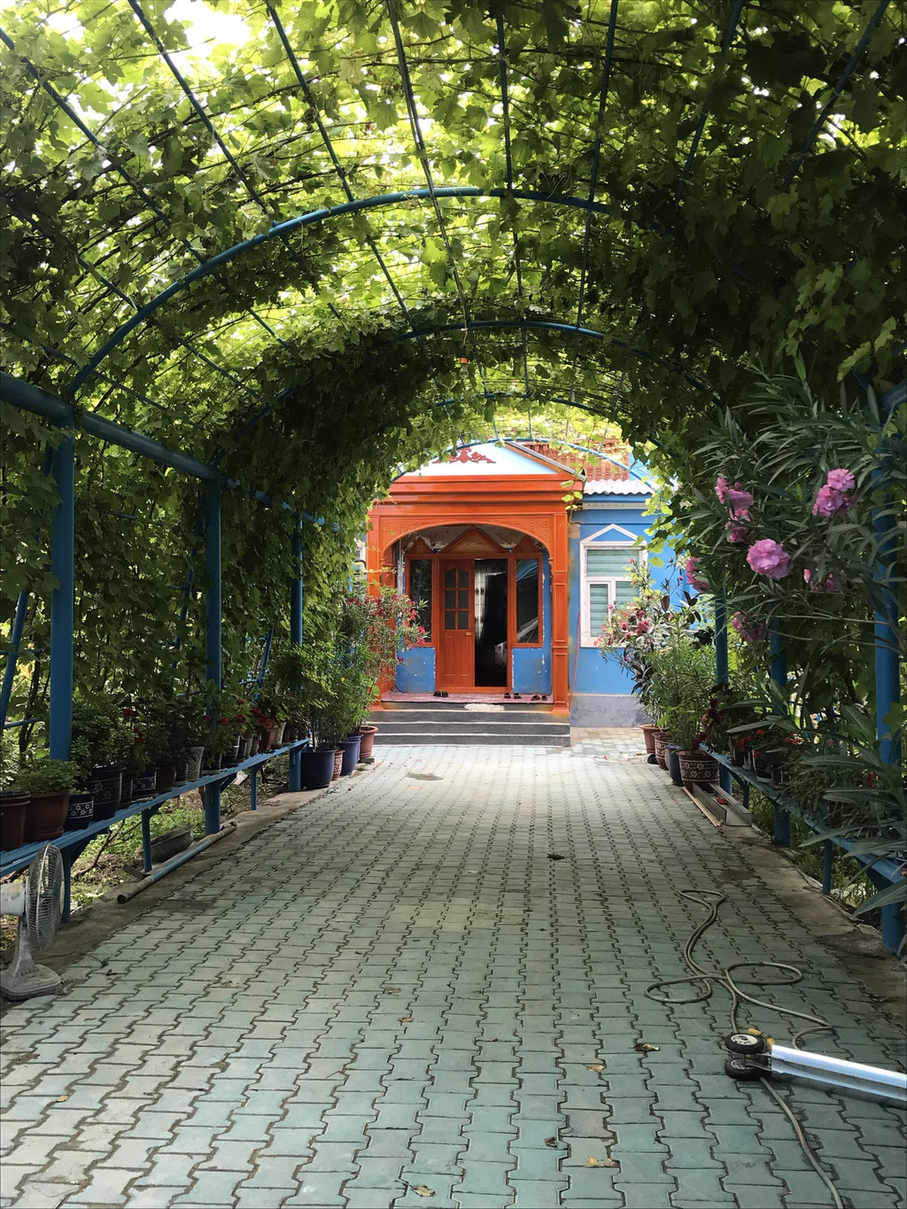 随着时间的推移,从转角处漂来了阵阵清香,小院里的烟火气息扑面而来。我忐忑的推开一扇门。和大叔说明来意,他热情的让我们进去。干净整洁茶香四溢的院落,应该是一个富裕家庭。大叔的汉语说的不错。