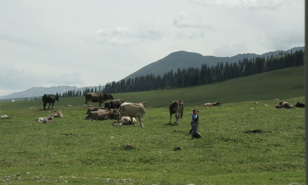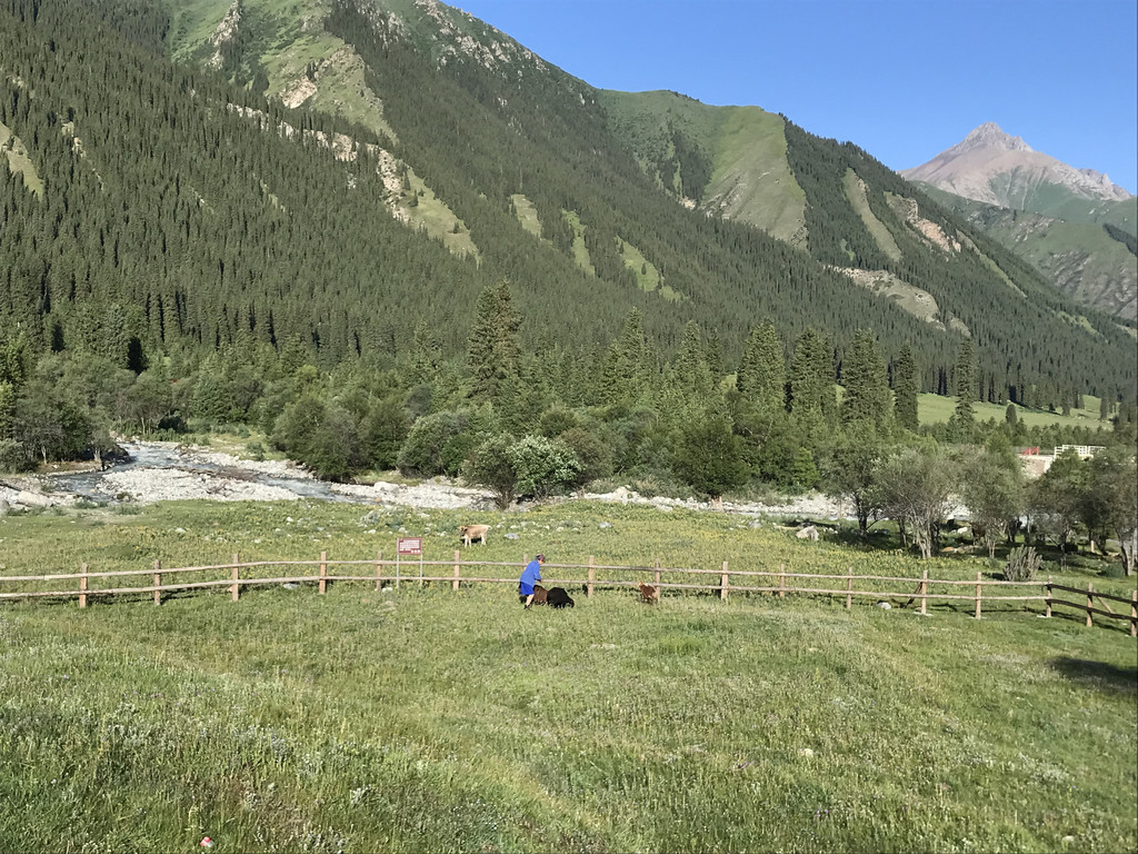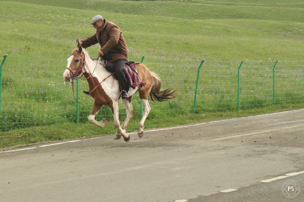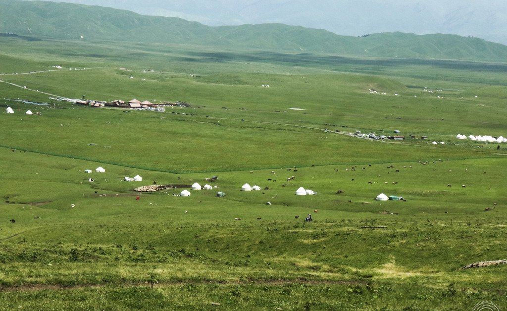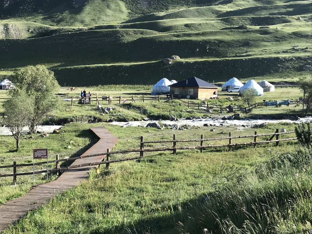 拍完照后汽车继续在如画的山里行驶。在快到琼库什台的地方,看到很多在建的工地。标着某某渡假村。原来丝滑的草原裸露出沙石,水流也变得浑浊。我为这么原始如初的大自然遭到破坏有些不安。也开始担心琼库什台是不是我想看到的朴实自然的哈萨克牧民小村庄。