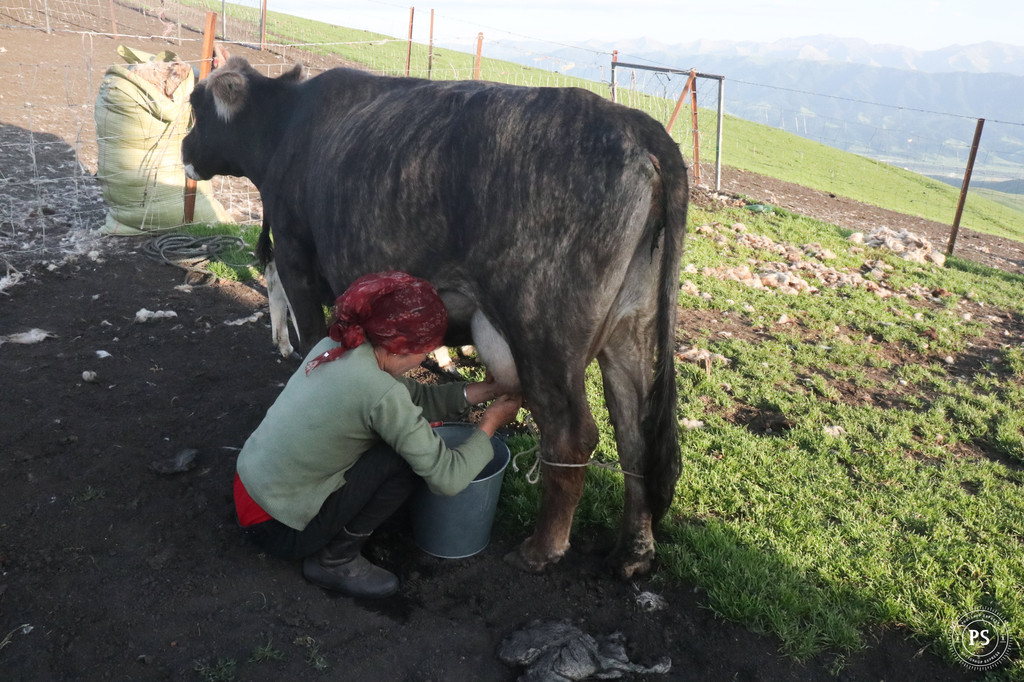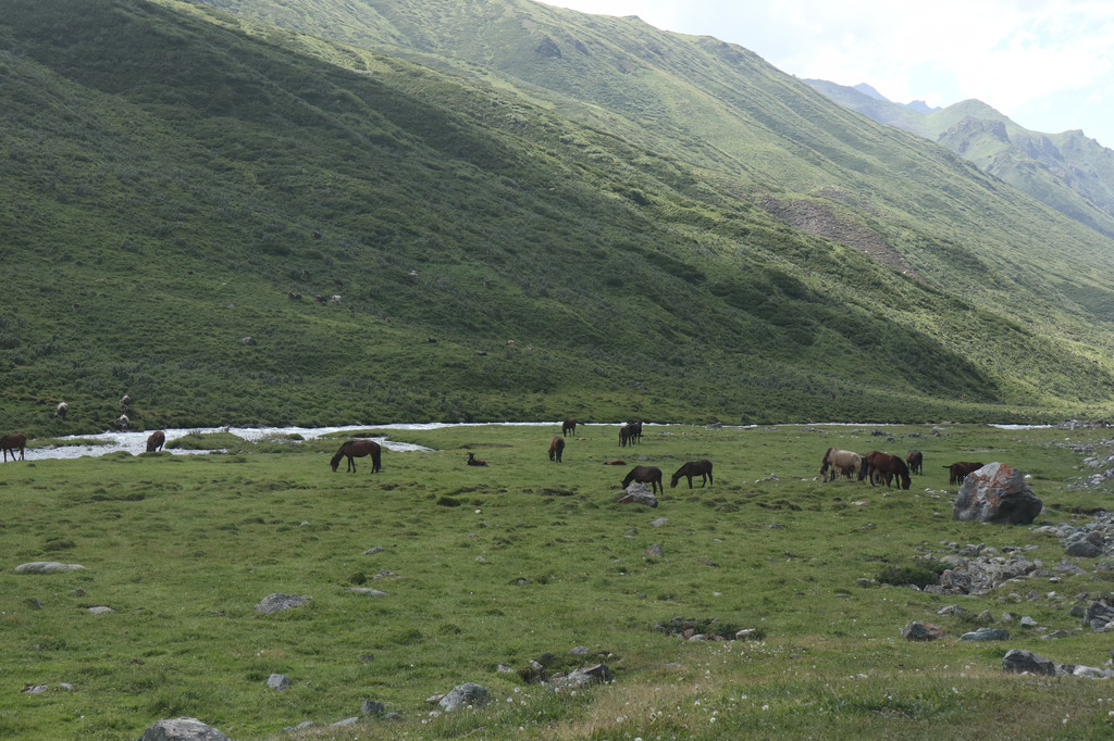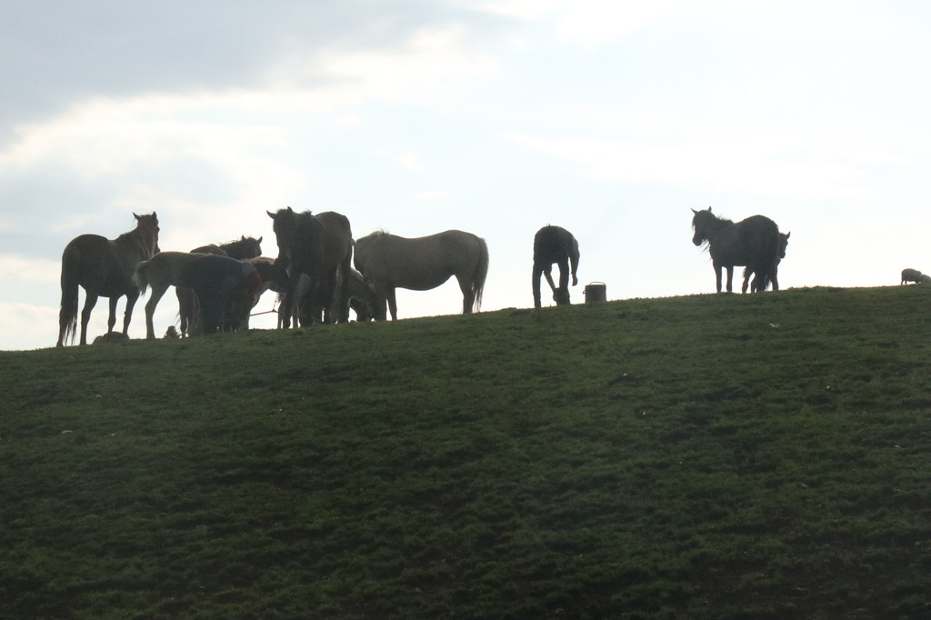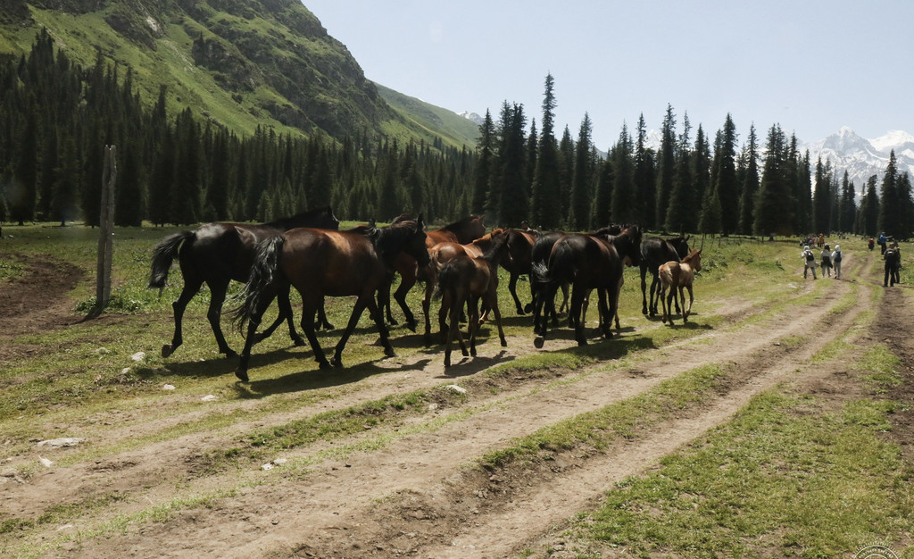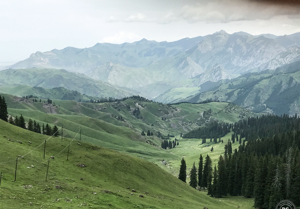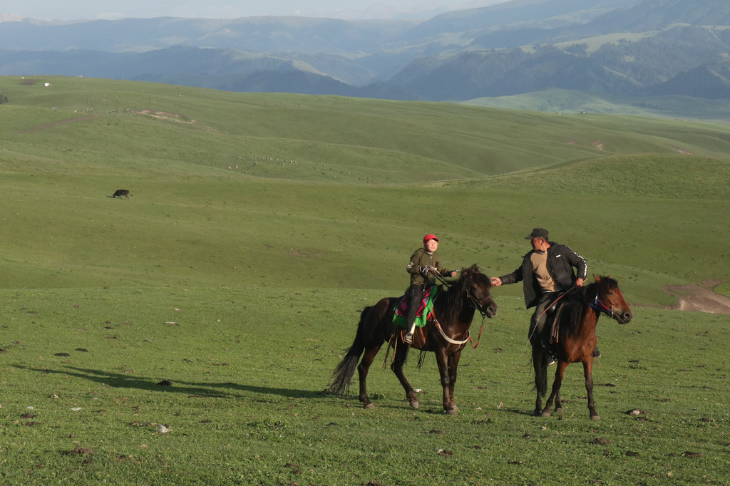 拍完照后汽车继续在如画的山里行驶。在快到琼库什台的地方,看到很多在建的工地。标着某某渡假村。原来丝滑的草原裸露出沙石,水流也变得浑浊。我为这么原始如初的大自然遭到破坏有些不安。也开始担心琼库什台是不是我想看到的朴实自然的哈萨克牧民小村庄。