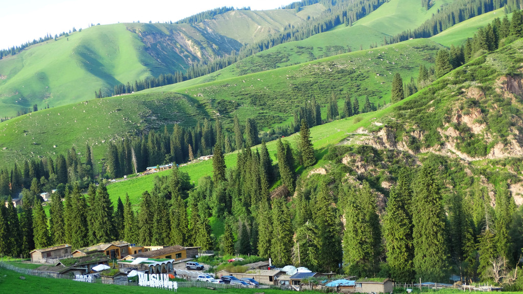琼库什台功略上说是天山脚下最美的的一个小众景点,在一山坡上有一个哈萨克牧民的小村庄,四面环山依水而建。从这些描述中让我们对它充满了无限期待!在特克斯的舍儒民宿住了两晚,每天都是早出晚归,传说中的八卦城也沒好好逛逛。留下了一点遗憾下次再来。
