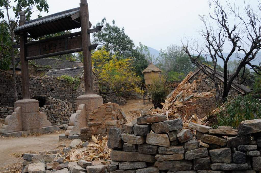 我们走着,有点累了,便坐下喝点茶,歇歇脚。窄窄的路边不见油漆色彩的石墙,阳光从两边瓦屋滴水檐之间洒下来,像一张张发黄的老照片。这里的旧街旧屋旧瓦旧墙,都透着岁月的沧桑。这就是常山村,一座历经繁荣传奇,于流转光阴中,渐趋平和安静的淳朴村落。