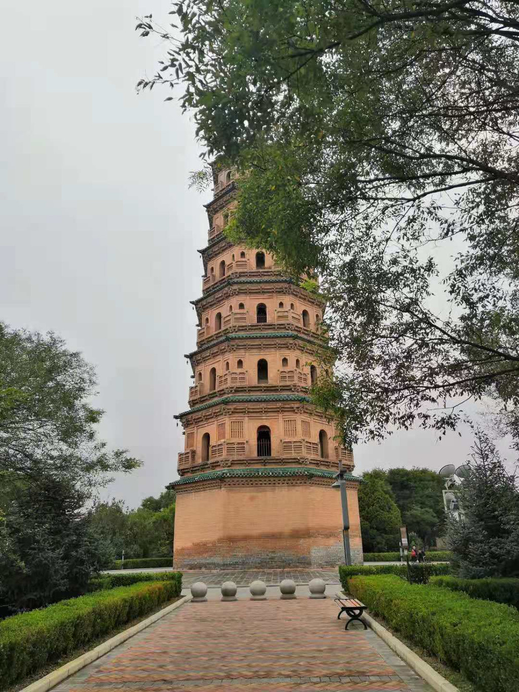 一O八塔 要是晴天的话应该会更好看···靠着黄河还有贺兰山脉