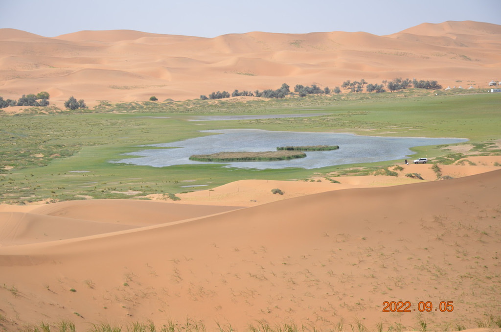 五湖最惊灿的是乌兰湖的地球心脏;不借助无人机是无法体验它的魅力;所谓送无人机也是很敷衍的几张集体照而已,名不符实!我们是It took a little extra effort实现了我们的愿望。因为下午要颠簸数十公里沙坡路(同行的一个年岁大的,进入第一段就严重晕车,无奈只能折返营地),中午饭只能吃几口,意思意思(我们属于55岁以上者,需要签“生死状”)。所谓下午茶没有见到(其实我们是为乌兰湖而来,其它不重要。)滑沙有,体验了,蛮好的。