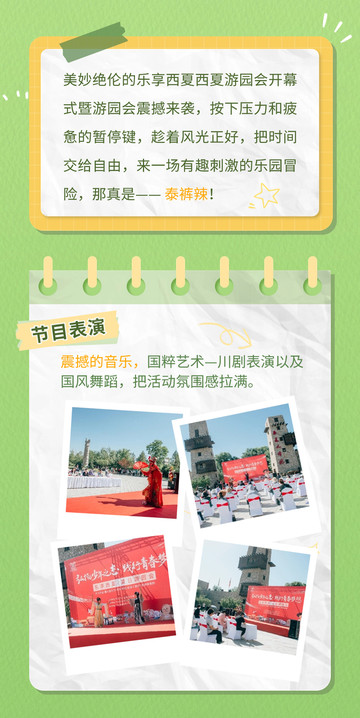 西夏风情园通过一系列文化旅游活动,包括传统文字的学习、飞花令、手作体验、农耕体验等文化演艺、体验项目等方式,为群众送上一道道丰富的精神文化大餐,为走进银川的游客多角度展示宁夏丰富的旅游资源、独特的文旅体验。