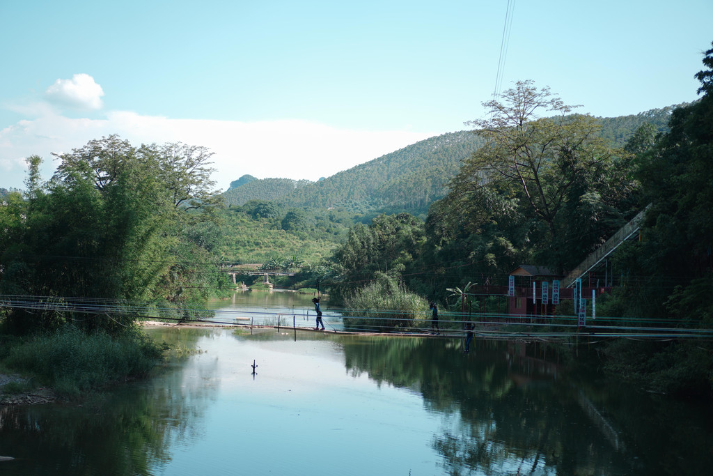 在景区入口处,还有一个非常惊险刺激的项目:步步惊心。一条条绳索横跨于江面上,单看着就觉得胆战心惊,更别说走上去了,非常适合胆子大的朋友来体验一下。