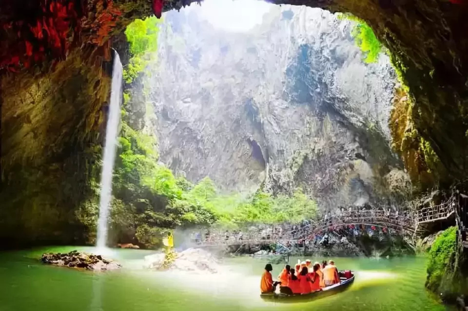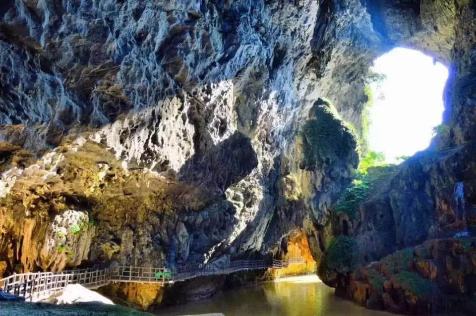 洞内常年恒温:20-22℃,冬暖夏凉。天坑内四季如春,树叶常年嫩绿,植物种类繁多。这里有光、有水、有地、有林,感觉像走入另一个世界,“别有洞天”就是这样叹为观止的意境!