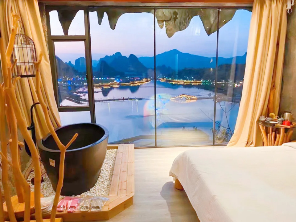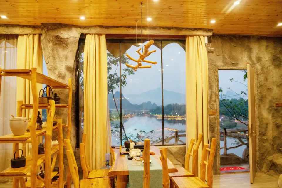 静下心来,泡上一壶清茶,可以和三五知己同桌共饮,谈天说地,还可以观赏窗外的峰林醉景。还可以在醉美湖景前放松身心,泡一个养生澡。
