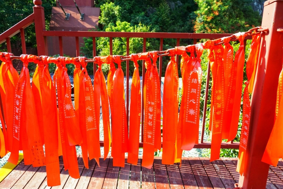 走到山顶,还看到很多的许愿条,听说离山边越近的地方许愿,天上的神仙就更容易接受到你的愿望,帮你实现呢!