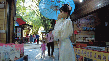 灯笼在路两边高高挂起,每个扇面都蕴含巧思……不妨穿上汉服,来到仙境之中,猜灯谜,偶遇奇缘吧~