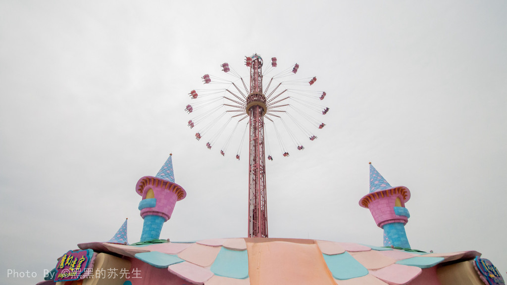 顺着巧克力工厂继续往前走,就到了景区最中心的区域,这里有很多大型的娱乐项目:奇幻漂流,升降蒲公英,炫空流云,海盗船,旋转木马,揽月游览车等等。