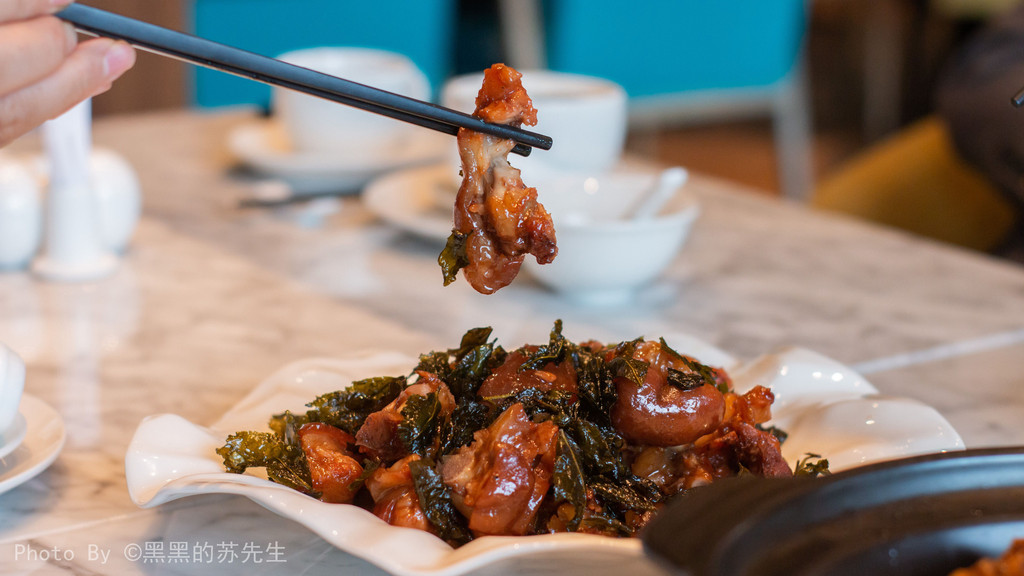 【茶香焖猪手】英德盛产红茶,这道菜把茶叶和猪手做了完美搭配,猪蹄肥而不腻,吃着还有淡淡的茶香味。