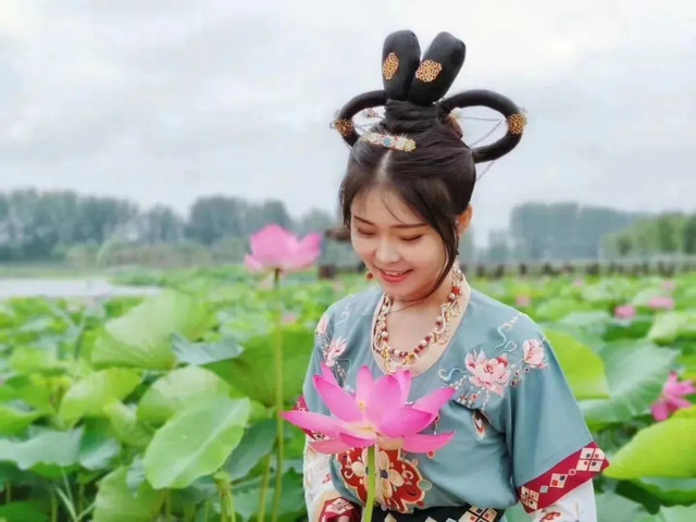 雅韵风情的汉服美人与荷花的幽香嫣然相得益彰,
