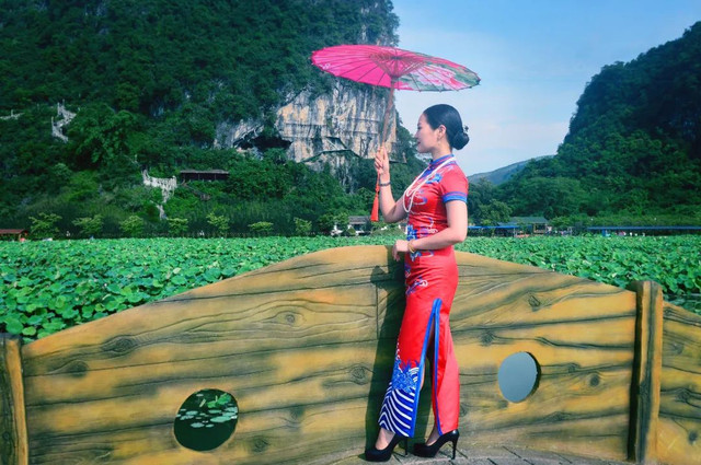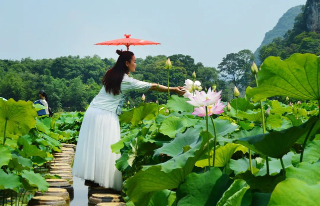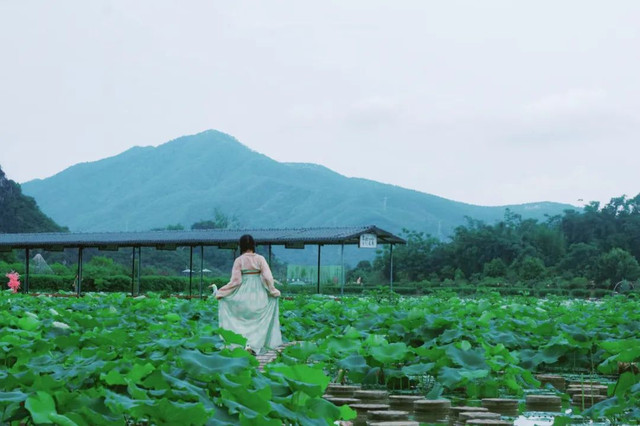 这次跟着闺蜜姐妹们到清远英德的峰林晓镇赏荷花去了。