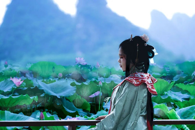 山水之间,穿上汉服的窈窕淑女在看风景,却不知看风景的人在看你。