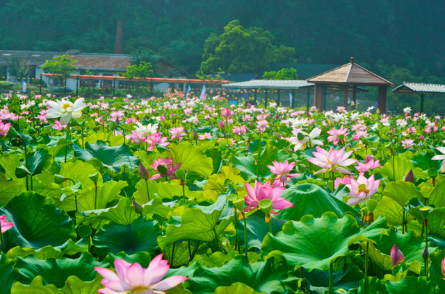 这里的荷花池塘不仅开满了美丽的荷花,还有荷花宴品尝,