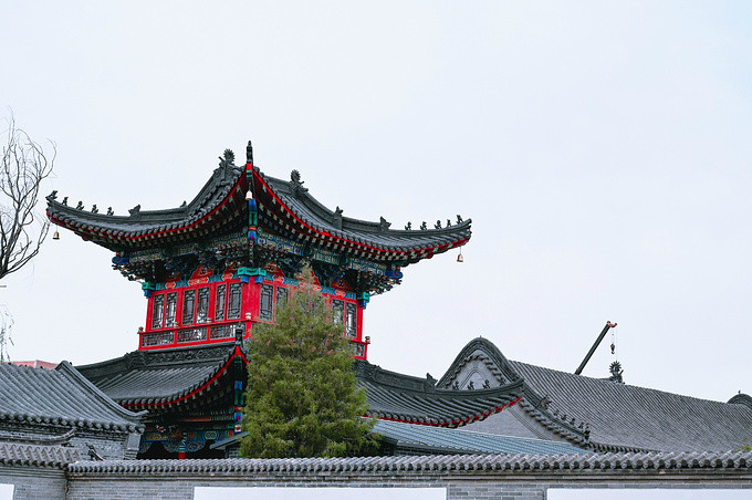 灰色的墙瓦默默诉说着时光的沧桑,鲜艳的彩色与单调的灰色既突兀又协调,奇异地交融在一起,柔软的柳树与倔强的白杨,似乎站立在两个季节,静止沉默。