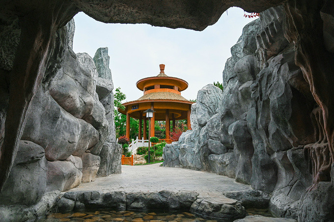 在彩虹的氤氲中,彰显皇家沐浴的风范。满清风格浓厚的御林苑区由七个汤池组成。太和泉,寓意天下太平,和谐美满。保和泉,寓意只有神志专一,才能保持宇宙万物和谐共生。中和泉,《礼记中庸》:中也者,天下之本也;和也者,天下之道也。养心泉,《孟子》:养心莫善于寡欲。坤宁泉,《道德经》:“地得一以宁。”其意为大地得到道而宁静。咏梅泉:“疏是枝条艳是花,春装儿女竞奢华”海棠泉:“偷来梨蕊三分白,借得梅花一缕魂”。