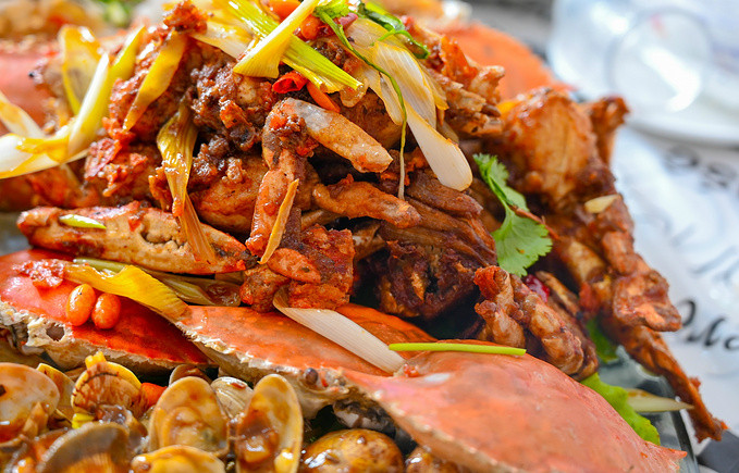 香辣海飞蟹、清蒸赤甲红、蒜蓉扇贝生蚝、