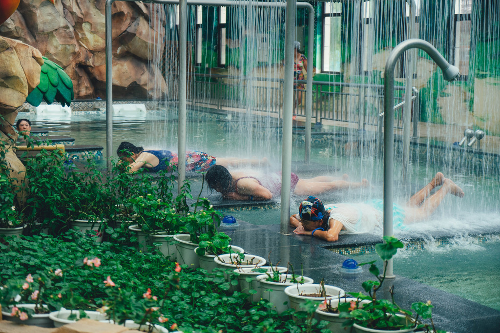 走出酒店,不远处的温泉水乐园里,便能解锁温泉的另一种玩法。