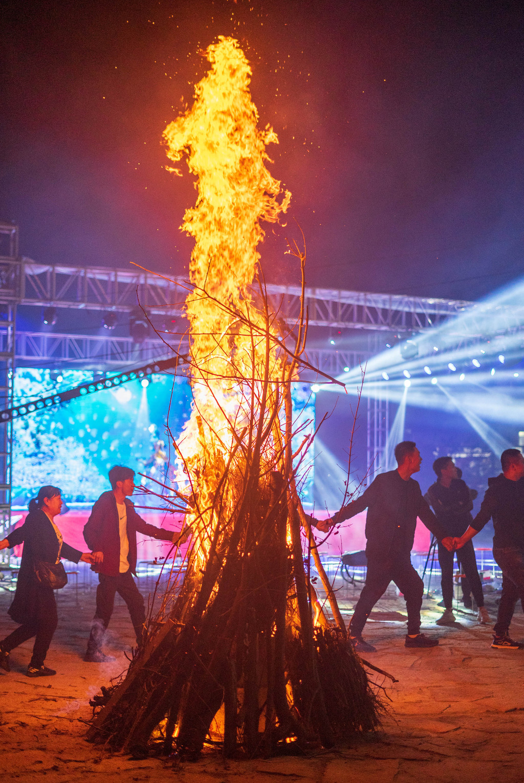 后来的营口之夜,我们又看过漫天的烟花,也裹紧外套围着篝火起舞,夜晚的舞台璀璨,歌手们放声高歌,将这静谧的夜点燃起来。
