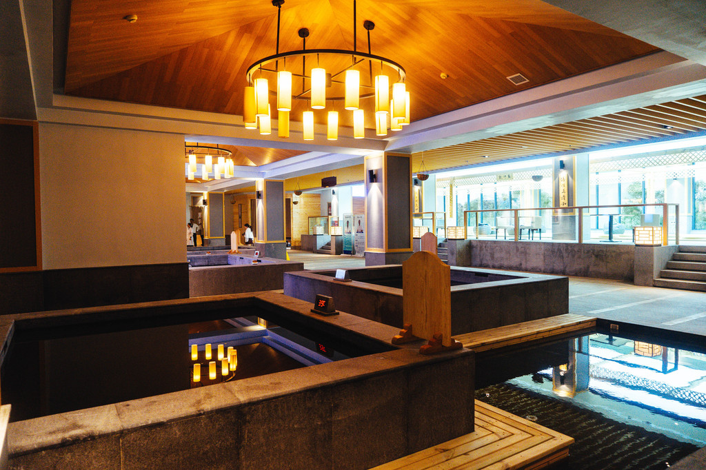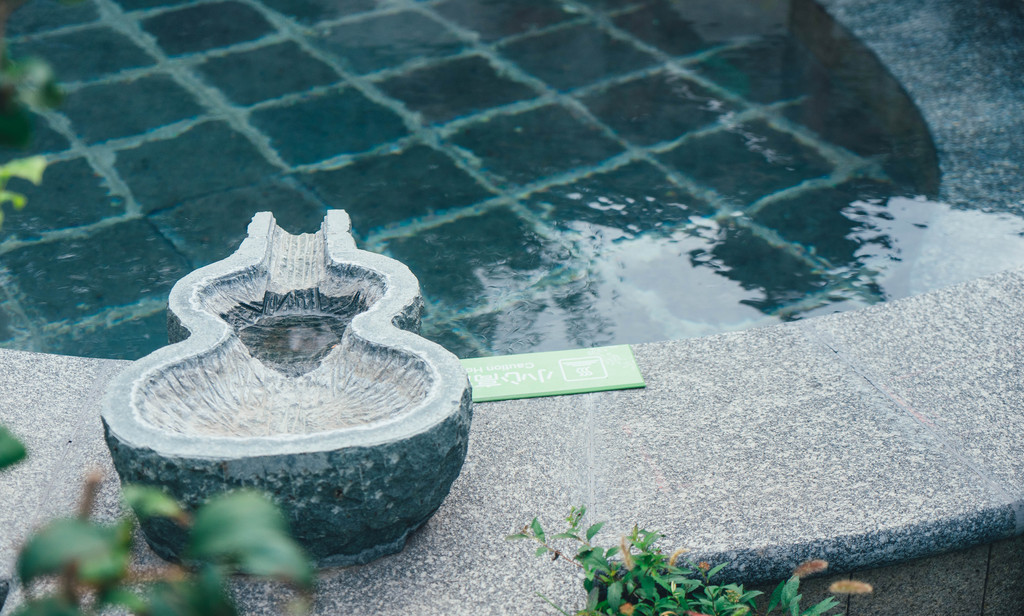 温泉水质纯正,富含偏硅酸、锂、钍、氡等多种有益人体美容、养生和保健的微量元素。根据不同的营养元素分成不同泉池,还创意的运用了十二生肖的形象,增添了些俏皮的气质。