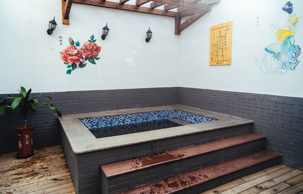 若是泡的不过瘾,晚上回到下榻的旺裕和堂胡同,房间里醒目的除了能睡4人的大炕,还自备了汤池。洗漱后跟闺蜜泡在汤池里聊聊日常和八卦,这也是独一份的闺蜜夜话了吧。