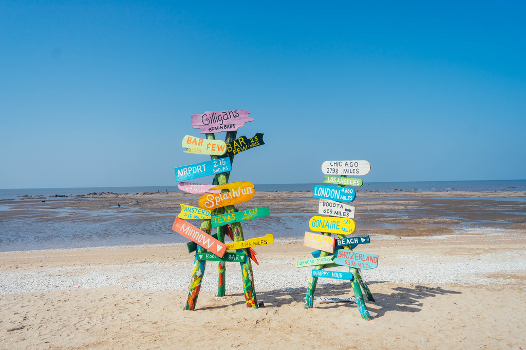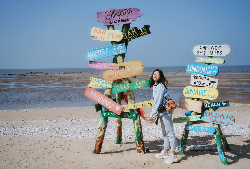 恰是秋高气爽,天儿分外蓝。沿着海边的栈道漫步,穿件外套抗海风,太阳照在身上暖洋洋的。立在海边五颜六色的木头指示牌,把这片海渲染出了阳光海岸的气质。