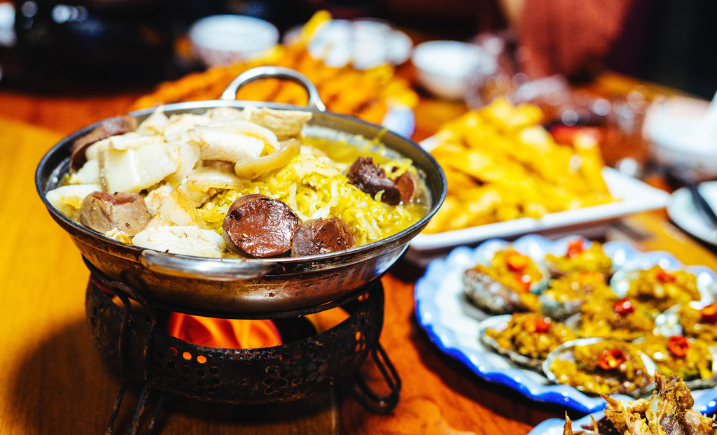 现捞的螃蟹、个儿大到一口三吃的虾、鲍鱼……各种海鲜纷纷上桌进锅,咕嘟咕嘟的火锅沸腾声让我舌尖生津。