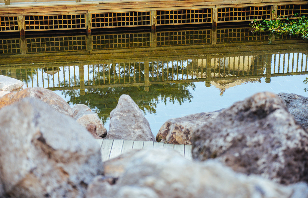 室外温泉部分,环境亦是极佳,满眼的绿树红花,不像在秋天,倒像是花木繁盛的春日。