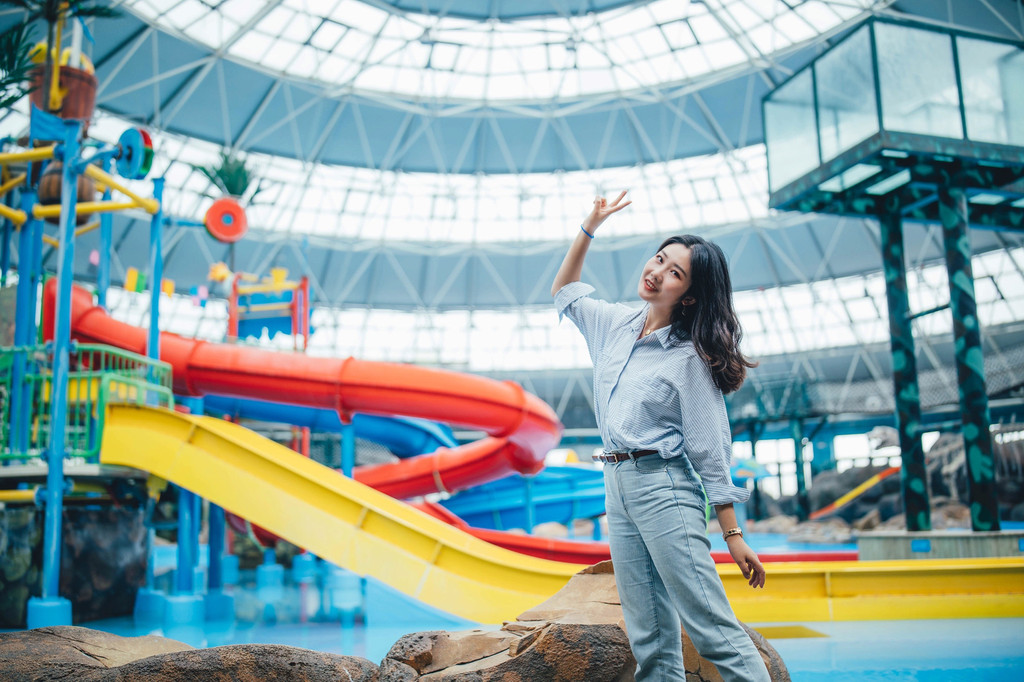 讲真,水乐园见过许多,可是温泉水浇灌的水乐园在此次行程之前却是闻所未闻。若说温泉泡汤是一个温柔的大姐姐,抚去旅行的疲惫和秋日的寒,那么水乐园就像个活泼的小妹妹,牵着你的手,在这仿若迪士尼乐园般的梦幻世界中,放飞自我。