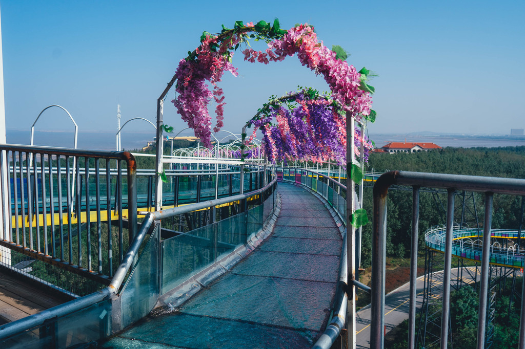 这座玻璃桥不同于靠山或靠墙而建,而是左右两侧悬空,比见过的其他玻璃桥更添几分惊险。千万别低头看太久,即便胆大如我还是略有些晕眩。