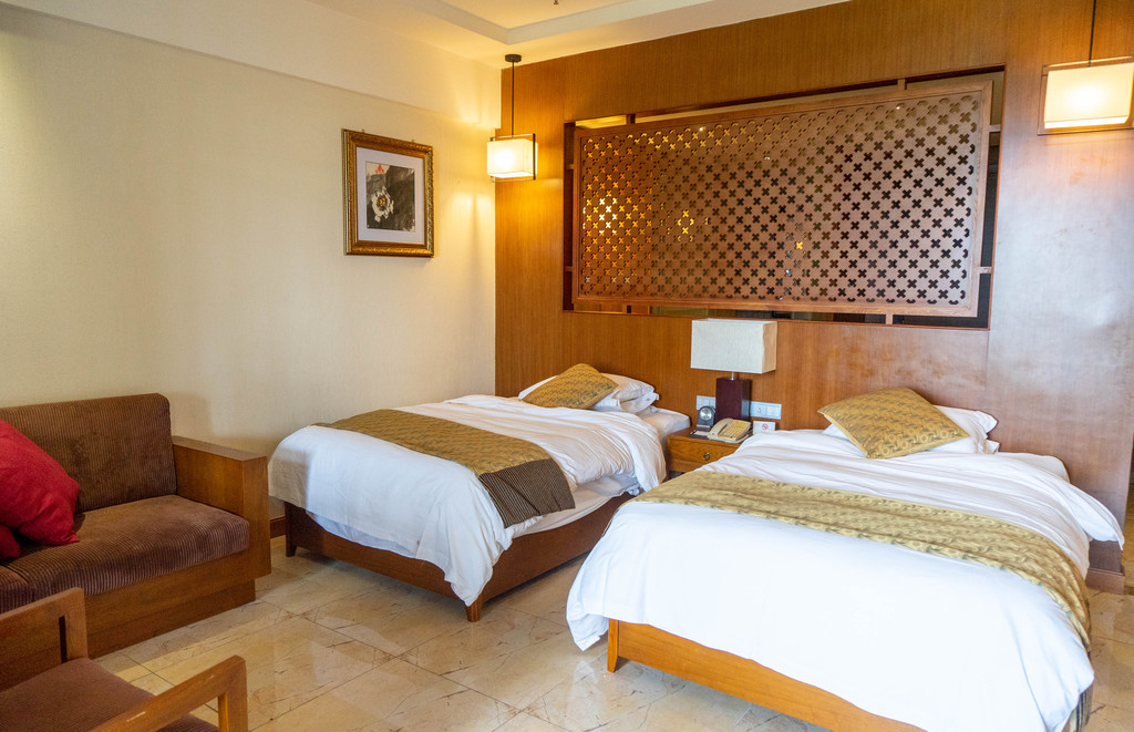 泡完温泉回到客房,房间也是经典的中式风。面积适中,设施一应俱全。沐浴很贴心的设置了淋浴和浴缸,连洗手台都备了两个。