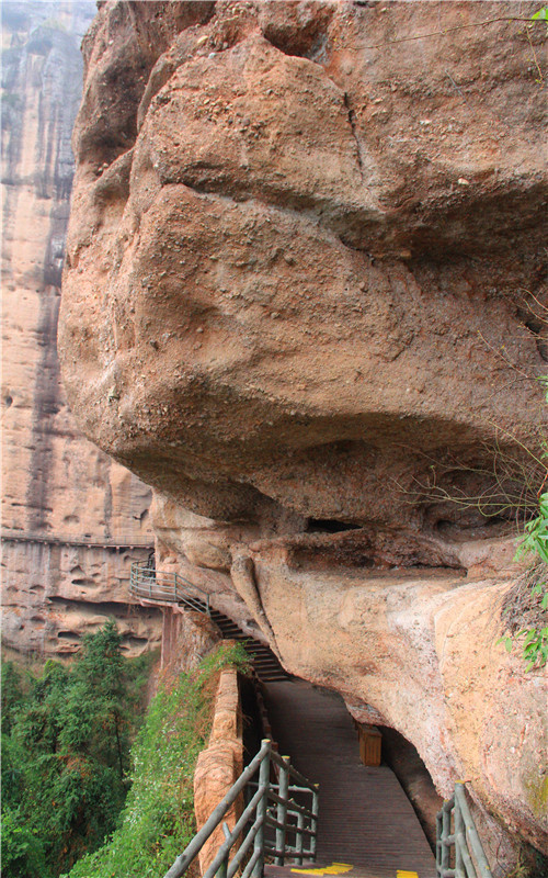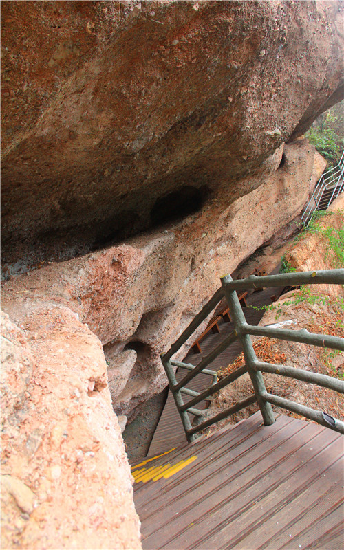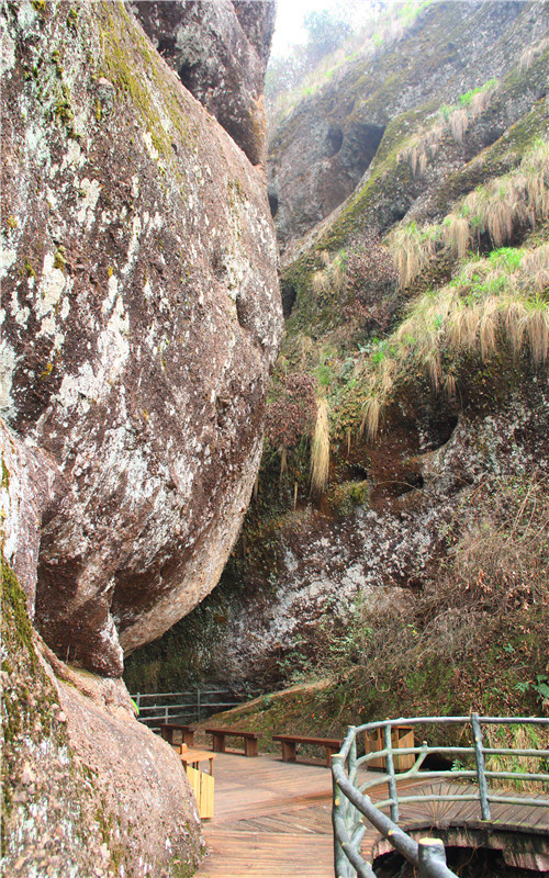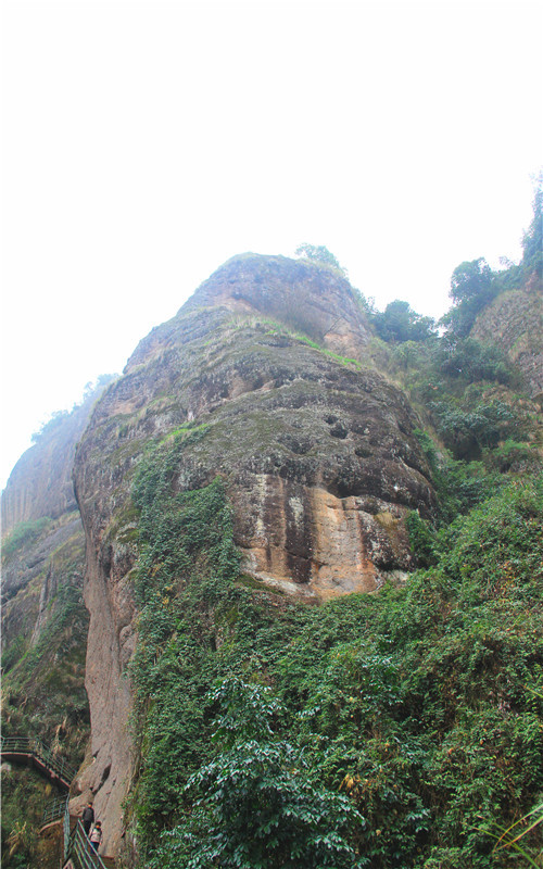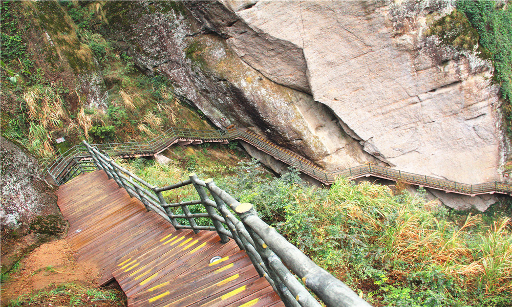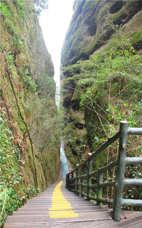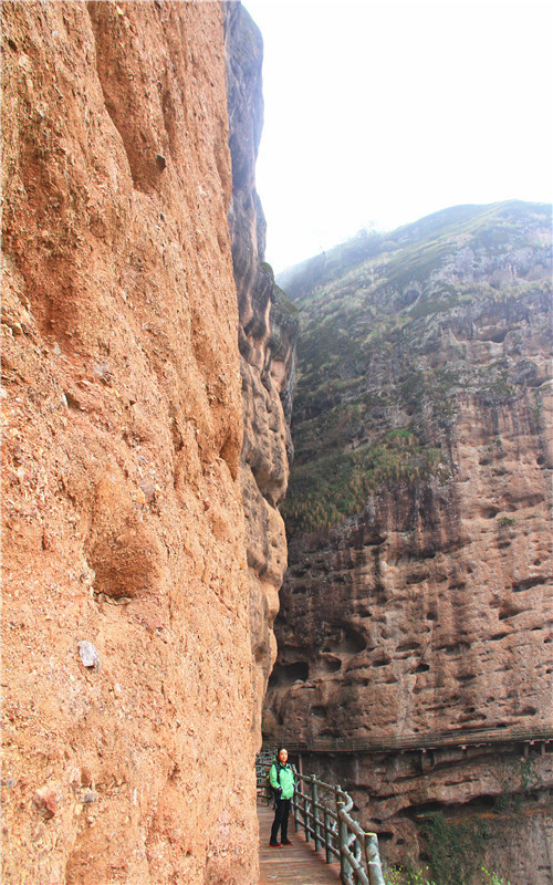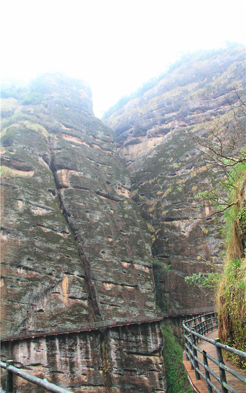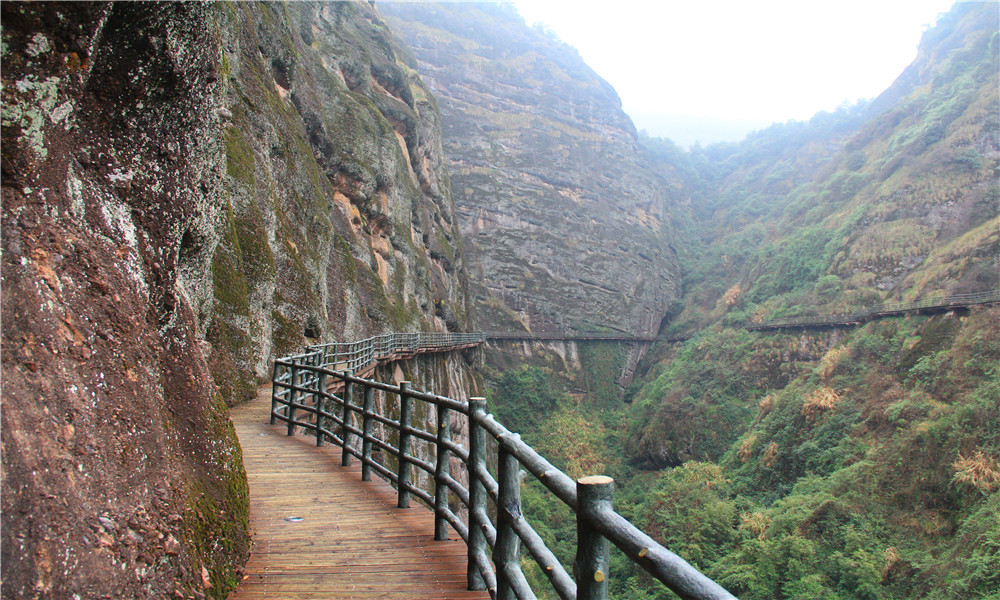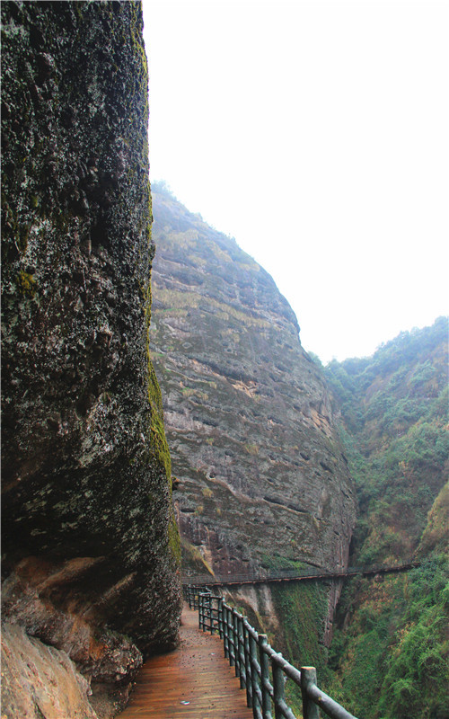 龙虎山的高空栈道实际上并不怎么高,像一条游龙蜿蜒缠绕在悬崖峭壁之上,沿途也比较平缓错落起伏不大。