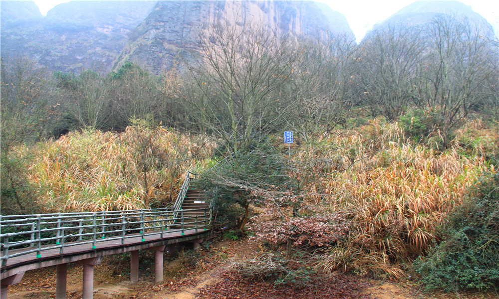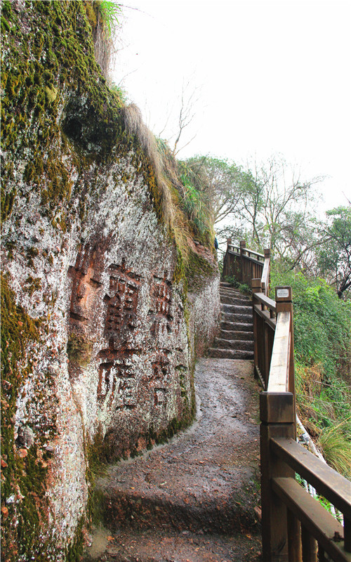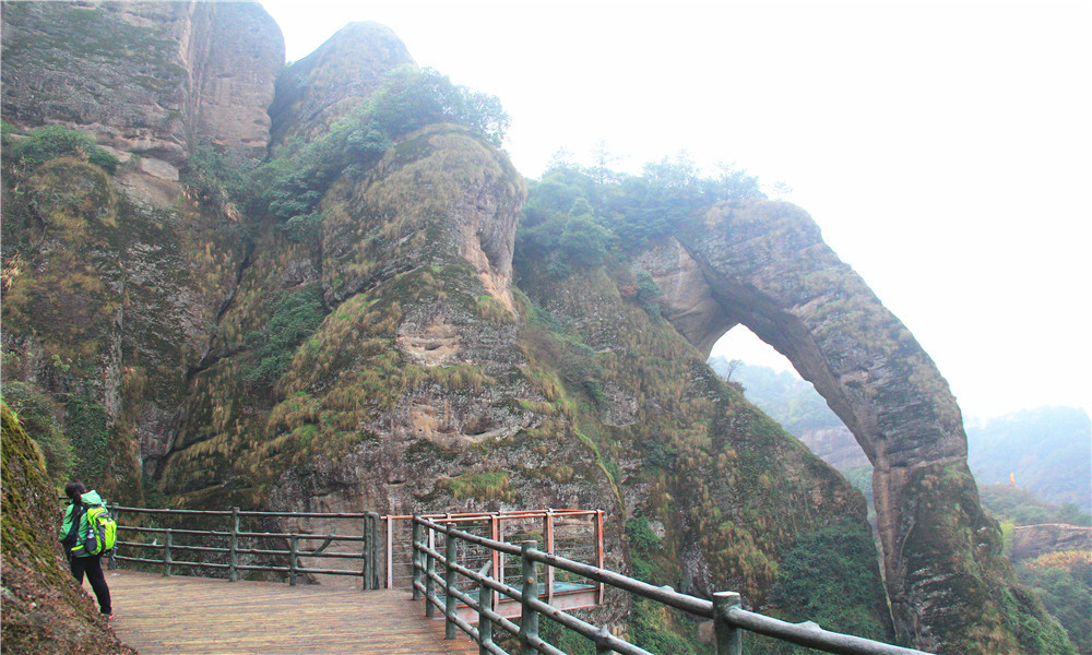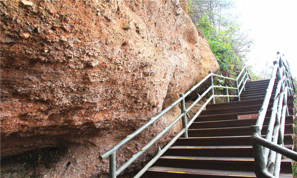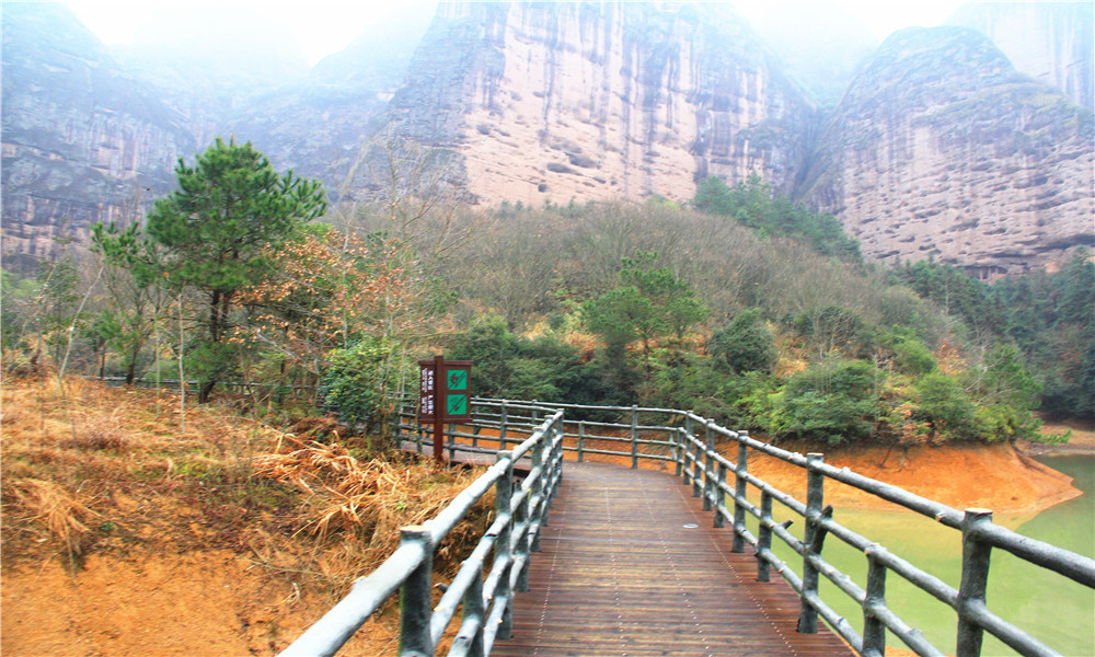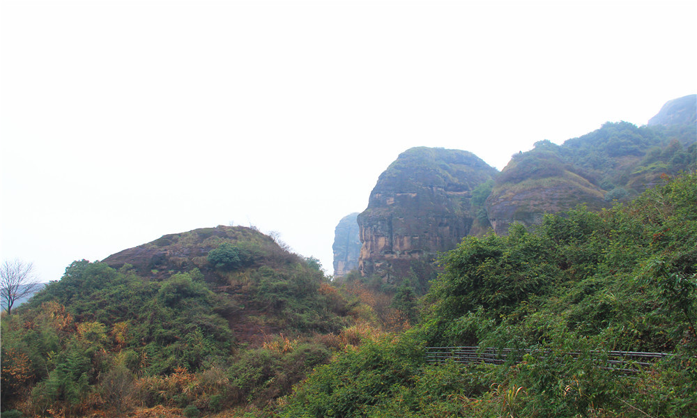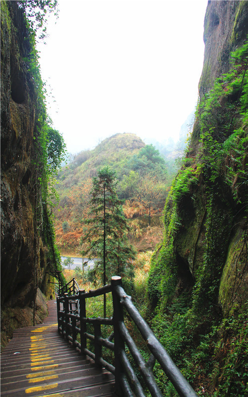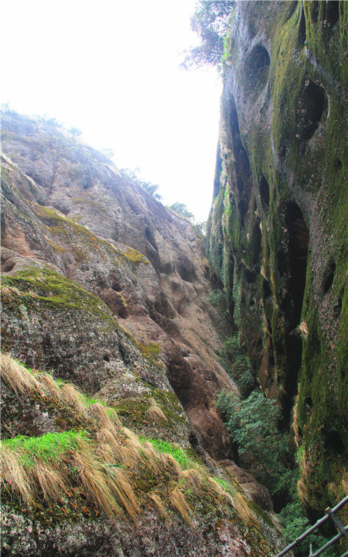 龙虎山的高空栈道实际上并不怎么高,像一条游龙蜿蜒缠绕在悬崖峭壁之上,沿途也比较平缓错落起伏不大。