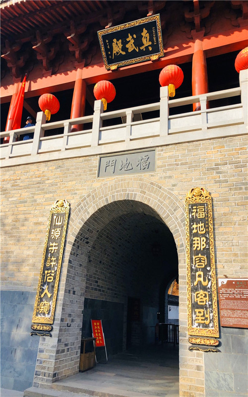 大上清宫有着和北京故宫一样的中轴线布局。中轴线自南向北依次是龙虎门、玉皇殿、后土殿、三清阁。东西两侧为各主殿对应的配殿,它们由连廊及厢房相连。
