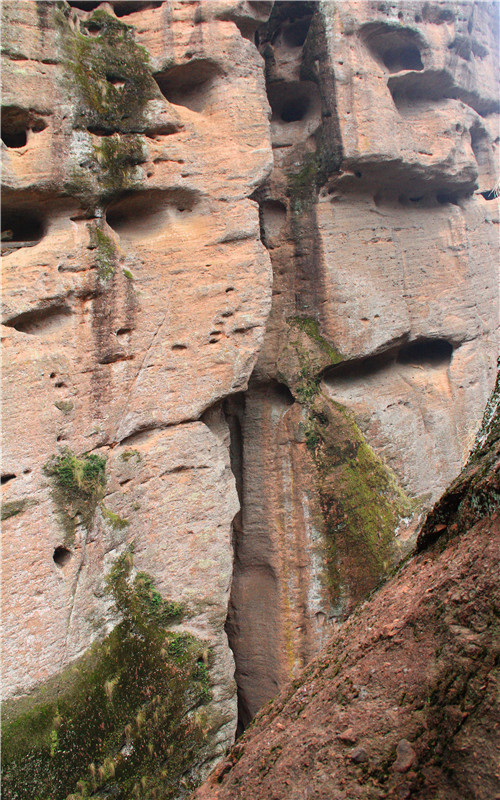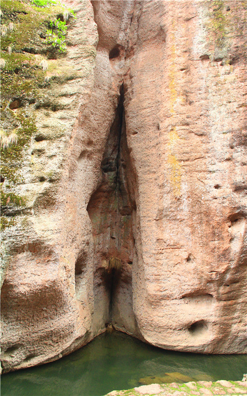 仙女岩就是个庞大的岩壁,酷似一个裸体女子的下身,是那样逼真自然,出神入化,很难想象,这会是天然形成的。