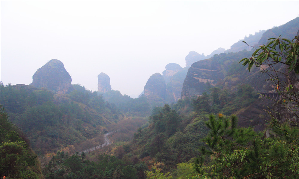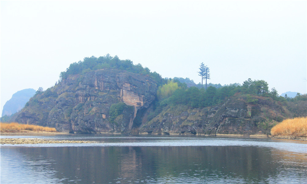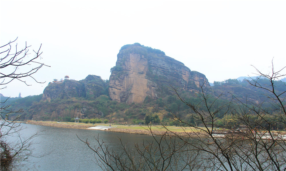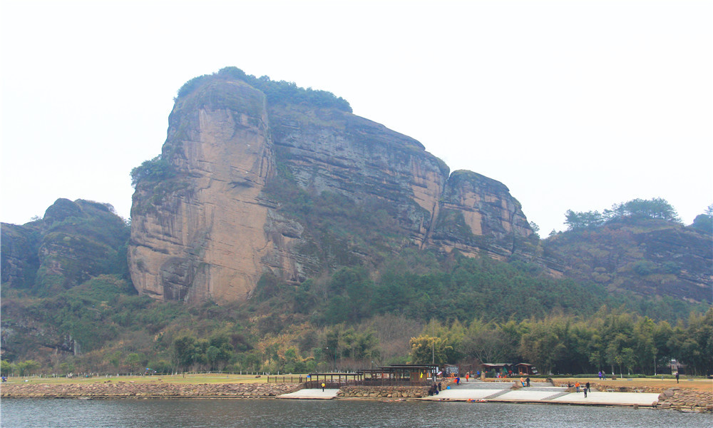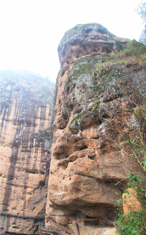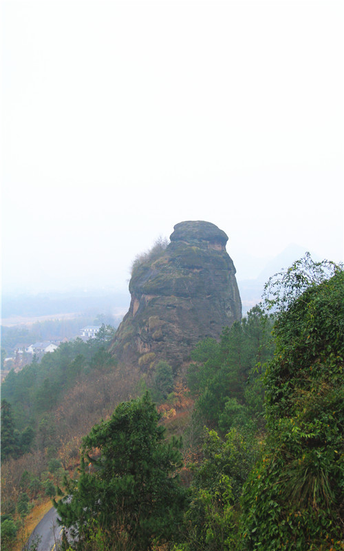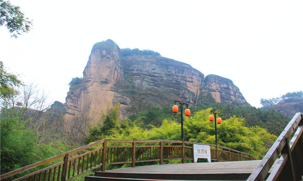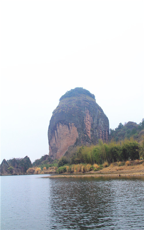 龙虎山因其丹霞地貌,以是千姿百态,形成为了各种异景。特别是“金枪峰”,可谓绝景,它位于天鹅湖东,高112米,石峰直插平畴,平地凸起,有孤柱擎天之状,呈男性阳刚之美。