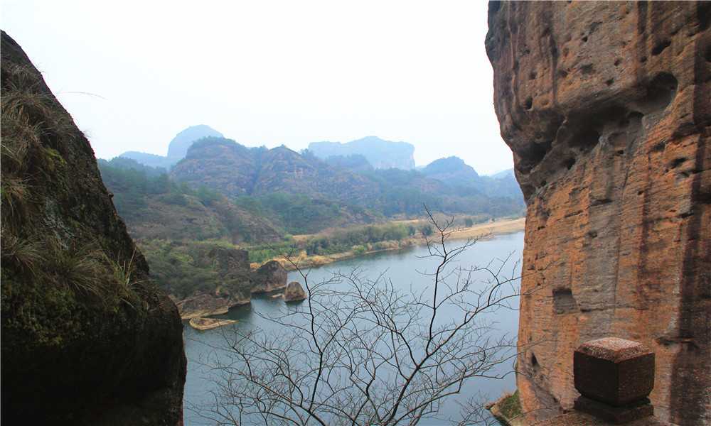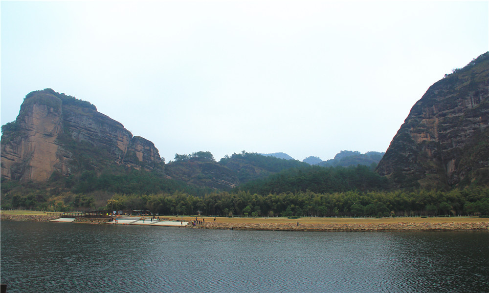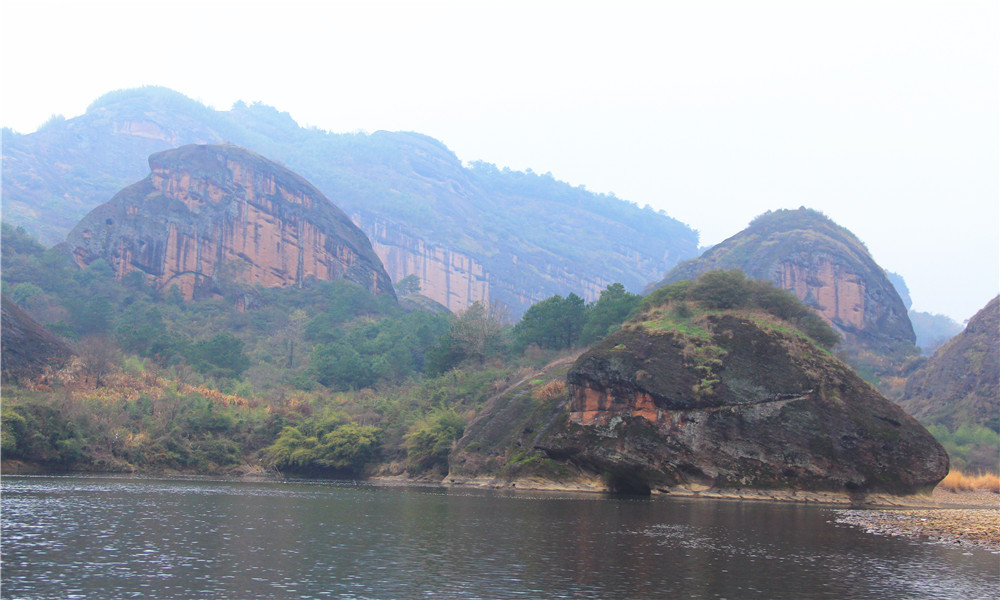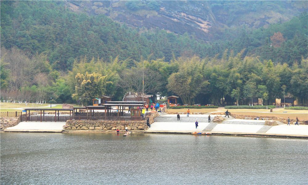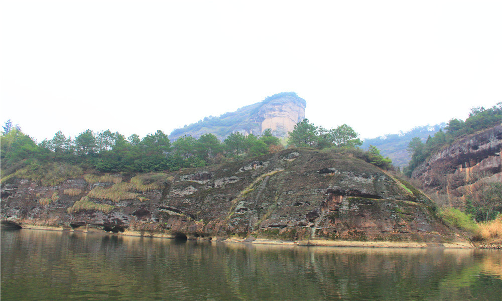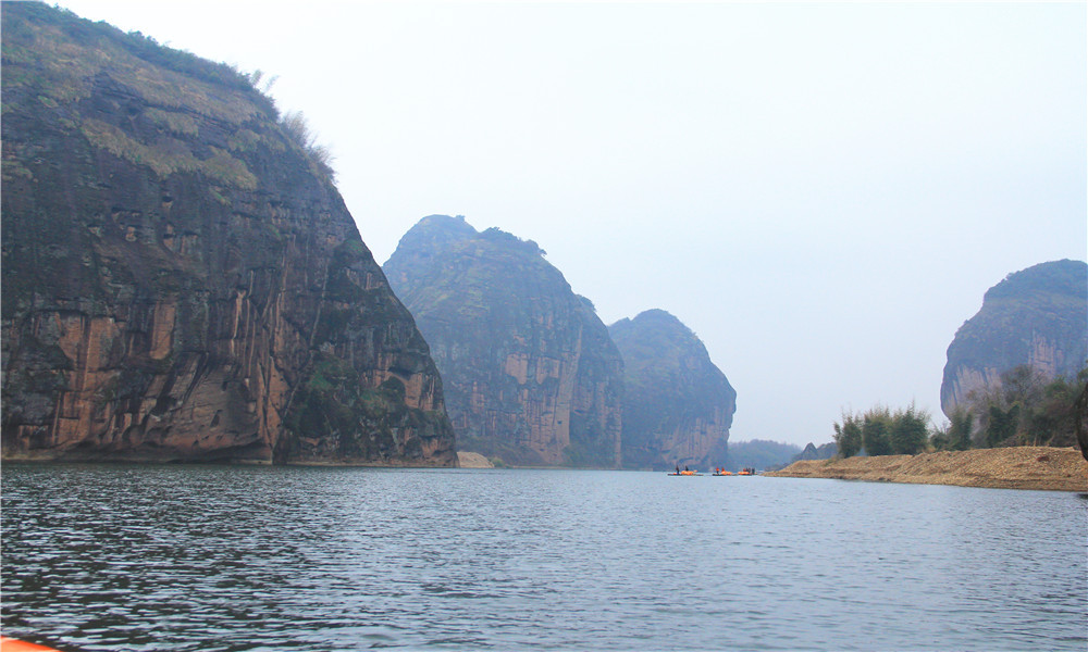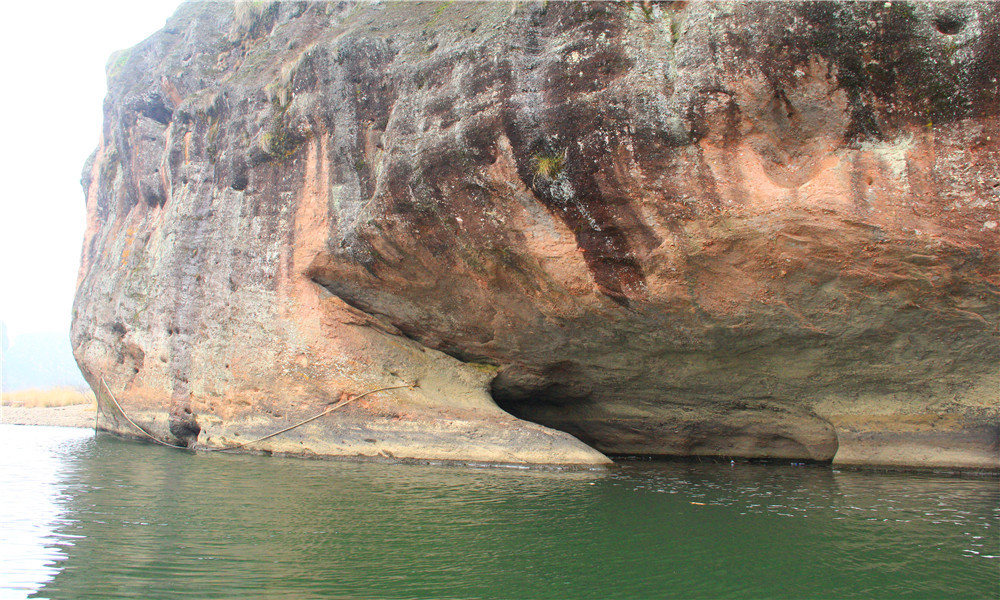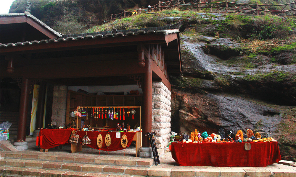 顺河而下,将陆续看到仙水岩十景中的"云锦披不得"、"石鼓敲不得"、"道堂坐不得"、"莲花戴不得"、"玉梳梳不得"、"仙桃吃不得"、"仙女配不得"、"老婆背老公走不得"。