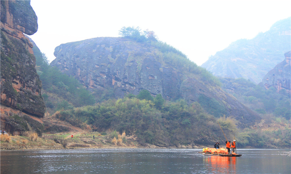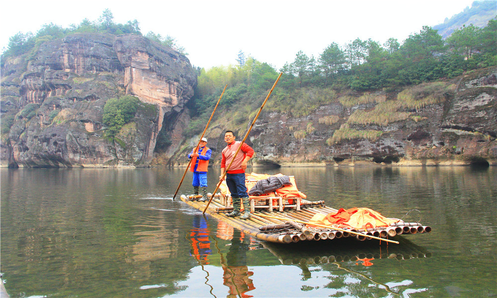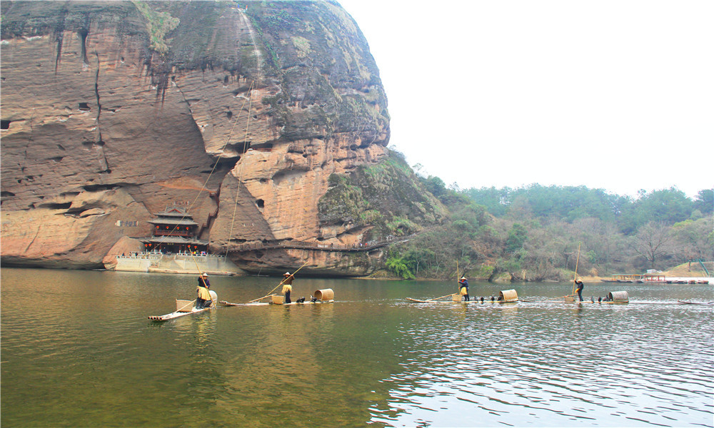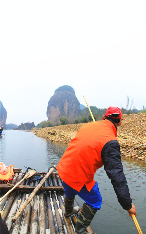 一叶扁舟出没于龙虎山的丹山碧水之中,矫健的鱼鹰、迅捷的鱼儿、黝黑的渔夫、碧绿的江水、两岸的群山,构成了一幅完美动人的和谐画卷。
