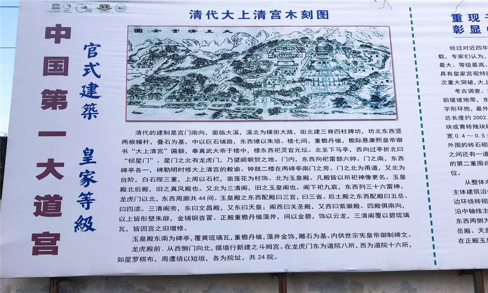 大上清宫遗址是我国迄今为止发掘的规模最大、等级最高、揭露地层关系最清晰、出土遗迹最丰富的具有皇家宫观特征的道教正一教祖庭遗址。