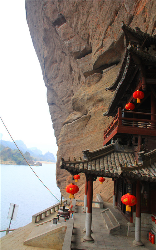 飞云阁就在龙虎山岸边的山峰上,在龙虎山旅游,必看项目有悬棺表演,而悬棺表演的地儿,就是飞云阁。