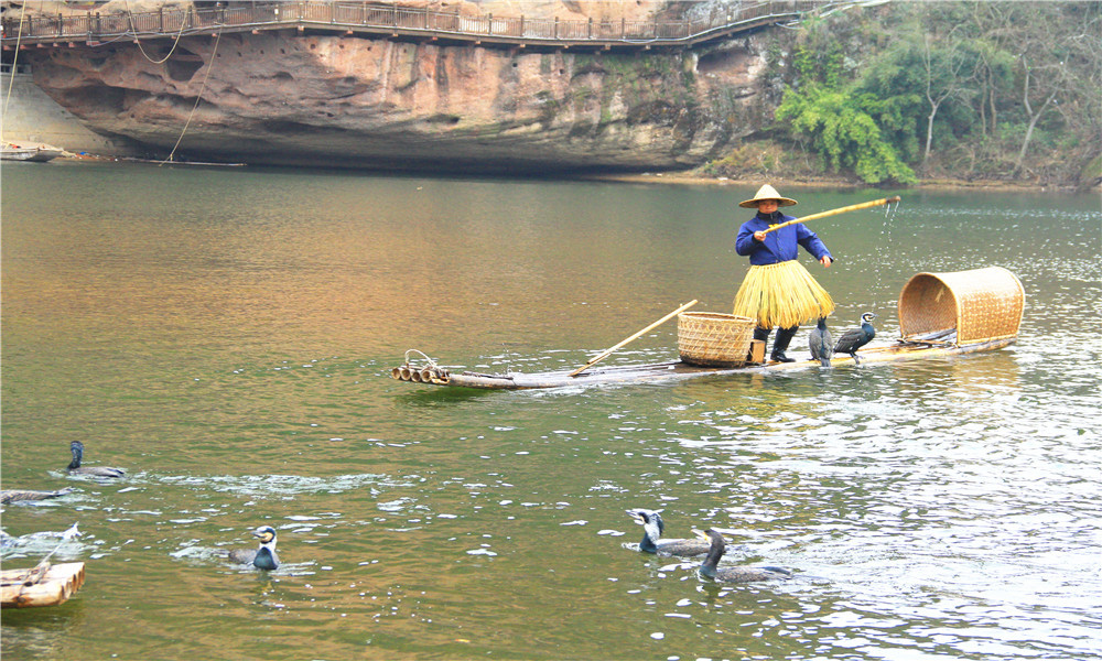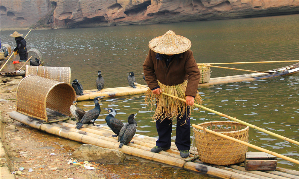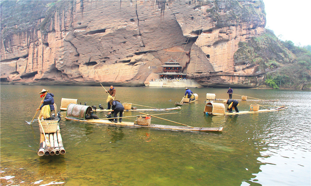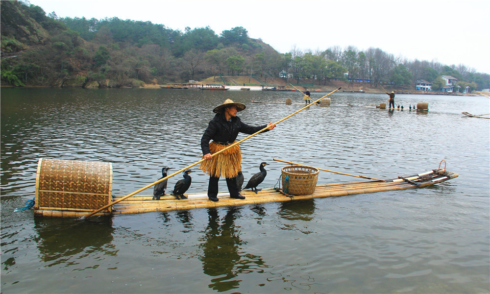 鸬鹚捕鱼是中国劳动人民传承千年的古老技艺,这项技艺在江西省著名的风景名胜区龙虎山中的渔民中也世代相传着。